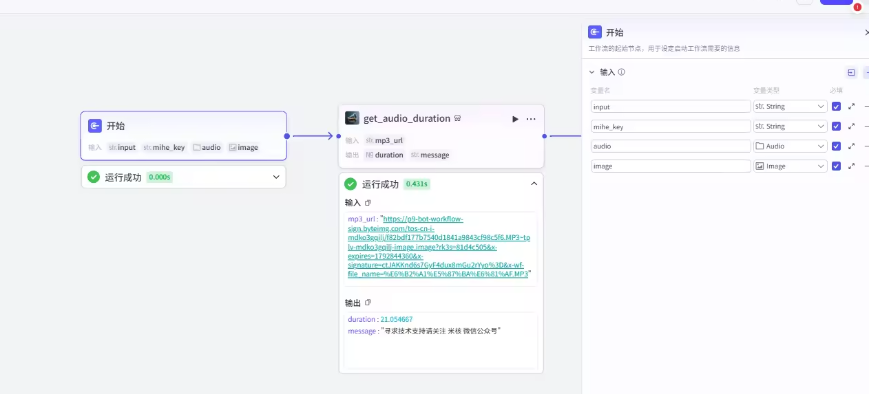 20秒左右的语音约花费8.14元 input:歌手描述 mihe_key: 米核的api_key 获取地址 https://miheai.com/ audio :歌曲音频 建议在30S左右。 image :歌手参考图 运行时间 根据歌曲时间不同运行时间不同 9分钟